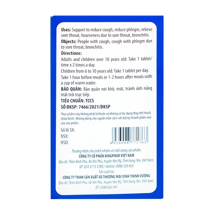 - Hỗ trợ giảm ho, giảm đờm, giảm đau rát họng, khàn tiếng do viêm họng, viêm phế quản.